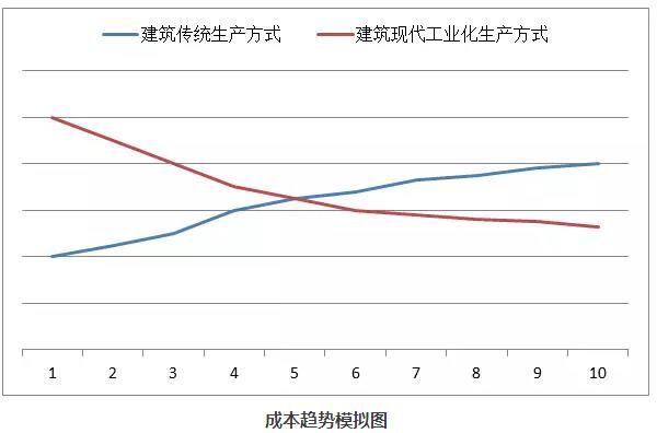 傳統(tǒng)生產(chǎn)方式的成本上升與工業(yè)現(xiàn)代化生產(chǎn)方式的成本下降,這是不可扭轉(zhuǎn)的發(fā)展趨勢(shì)!兩者終將在某個(gè)時(shí)間點(diǎn)相遇,當(dāng)工業(yè)現(xiàn)代化生產(chǎn)方式下的成本低于傳統(tǒng)生產(chǎn)方式時(shí),也是建筑工業(yè)現(xiàn)代化生產(chǎn)方式大面積取代建筑傳統(tǒng)生產(chǎn)方式的時(shí)間點(diǎn)。