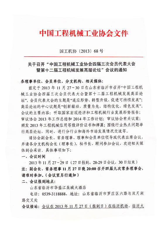 關(guān)于召開“中國工程機(jī)械工業(yè)協(xié)會四屆三次會員代表大會”會議的通知