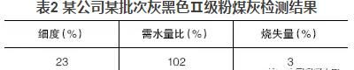 混凝土公司大多數使用的粉煤灰顏色與水泥相近,多呈灰色;也有部分粉煤灰顏色較深呈灰黑色,這種粉煤灰一般細度較細或含碳量較高。但總會發(fā)現一些深顏色的粉煤灰檢測結果與常理不符,如某公司某批次灰黑色Ⅱ級粉煤灰檢測結果見表2。
