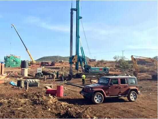 目前山河智能的兩臺(tái)旋挖鉆機(jī)和挖機(jī)正在Suswa地區(qū)跨B3公路特大橋項(xiàng)目施工,整機(jī)使用性能優(yōu)越,鉆孔效率高,特別是面對(duì)施工工況不太平整的路面時(shí)仍能保證絕對(duì)的穩(wěn)定性。