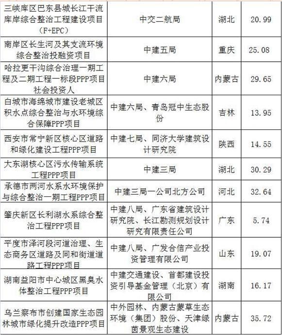 2017上半年建筑企業(yè)承攬環(huán)保工程PPP項(xiàng)目清單