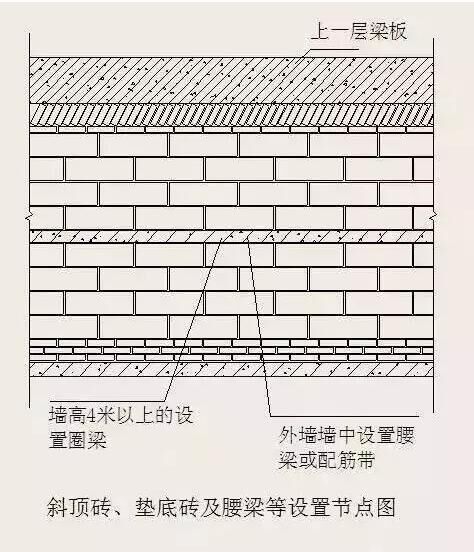 ( 2 )施工時在墻體轉(zhuǎn)角處立好皮數(shù)桿或利用混凝土墻柱做皮數(shù)桿,桿上標(biāo)明塊層、灰縫、窗臺板、門窗洞口、過梁、圈梁、預(yù)制件等的高度及位置,并應(yīng)隨時檢查其準(zhǔn)確性。