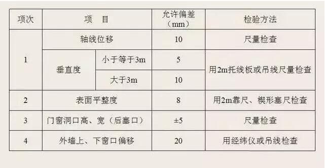 三、砌體工程質(zhì)量允許偏差