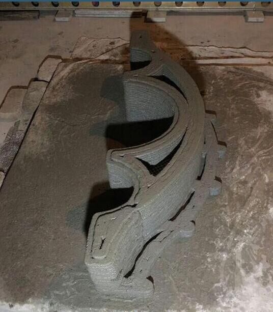 10月18日,來自中國河南的一個建筑3D打印團隊,發(fā)布了他們最新3D打印的石拱橋,材料為混凝土。據介紹,這座3D打印的石拱橋的長140厘米,寬58厘米,高50厘米,使用了281千克的混凝土,共打印了59層。