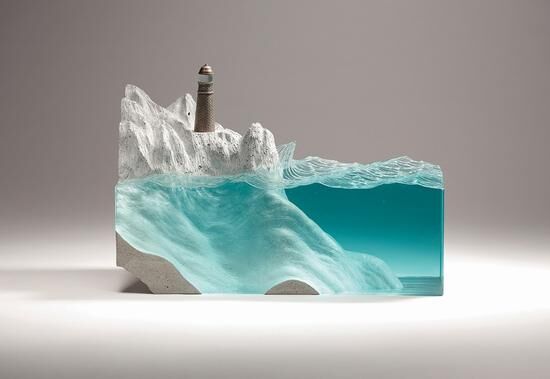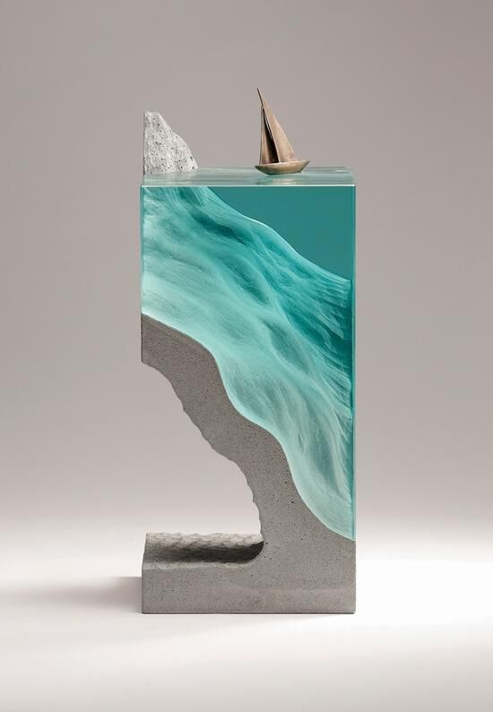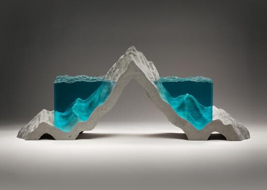 水、陸地、巖石被這位來自悉尼的雕塑家Ben Young用玻璃和混凝土打磨得惟妙惟肖,逼真同時(shí)很藝術(shù)。Ben Young出生在新西蘭,從事玻璃雕塑制作已有10多年的時(shí)間。他的作品看上去嚴(yán)絲合縫,精確細(xì)膩,盡管是混凝土這種粗糙的材料,也被打磨得如奶油般光滑。