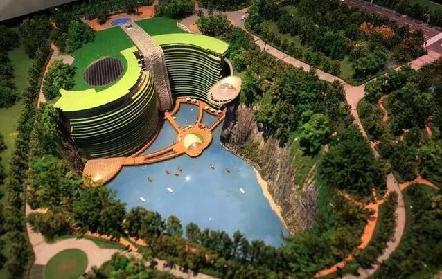 建成以后的深坑酒店簡直就是化腐朽為神奇。酒店70多米高,占地8000多平方米,共設(shè)有300余間客房,其中包括了水下情景套房等,此外還有與崖壁的自然資源融合定制的空中花園以及垂掛而下的壯觀瀑布。在娛樂方面也做得極好,還有蹦迪等項目。