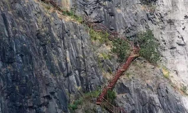 這么深的坑,又是懸崖峭壁,工人們花在從平地到坑底的時間實在太多了,根本沒法兒正常施工。之后,他們便試探著修了棧道,但這么險的崖壁,載重極其有限,效率也沒有提高多少。