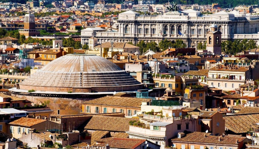 此廟始建于公元前27年,后遭毀,約公元118年在哈德良皇帝時(shí)期重建。 由水泥澆鑄成圓形,上覆半球形穹隆頂,直徑43米。萬(wàn)神廟采用了穹頂覆蓋的集中式形制,重建后的萬(wàn)神廟是單一空間、集中式構(gòu)圖的建筑物的代表,它也是羅馬穹頂技術(shù)的最高代表。