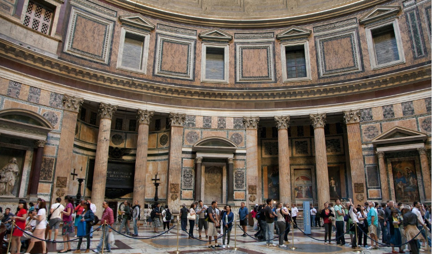 萬(wàn)神 殿是古羅馬精湛建筑技術(shù)的典范。它是一個(gè)寬度與高度相等的巨大圓柱體,上面覆蓋著半圓形的屋頂。拉斐爾等許多著名藝術(shù)家就葬在這里,葬在這里的還有意大利君主專(zhuān)制時(shí)期的統(tǒng)治者。對(duì)面是羅通達(dá)廣場(chǎng),廣場(chǎng)中央建有美麗的噴泉。萬(wàn)神殿是眾神所在的神殿,這里見(jiàn)證了歷史的變遷。