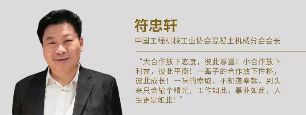“大合作放下態(tài)度,彼此尊重!小合作放下利益,彼此平衡!一輩子的合作放下性格,彼此成長!一味的索取,不知道奉獻(xiàn),到頭來只會輸個精光,工作如此,事業(yè)如此,人生更是如此!”符會長希望行業(yè)同仁一起,以更加合作開放的心態(tài),共同推動未來工程機械行業(yè)的繁榮發(fā)展。