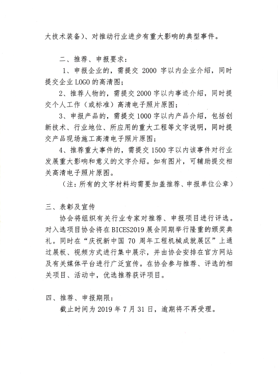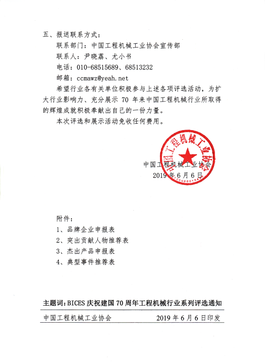 關(guān)于開展BICES慶祝建國70周年工程機(jī)械系列行業(yè)評選的通知