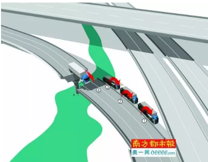 粵贛高速河源市境內(nèi)匝道橋梁發(fā)生斷裂并垮塌的示意圖