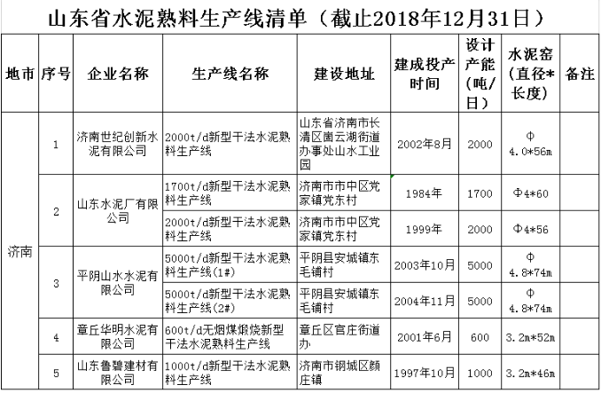 將截止2018年12月31日的山東省水泥熟料和平板玻璃生產(chǎn)線清單予以公示,共計75條水泥熟料生產(chǎn)線。