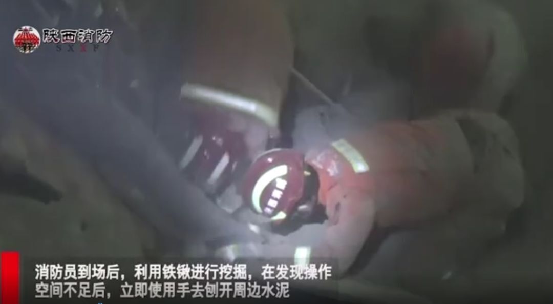 消防員在做好個(gè)人防護(hù)后利用救生軟梯深入到井底使用鐵鍬進(jìn)行挖掘,在發(fā)現(xiàn)操作空間不足后,立即改用手進(jìn)行刨沙,廠里的幾名工人也隨即上前幫忙一起挖掘。經(jīng)過1個(gè)小時(shí)的處置,成功救出被困人員。
