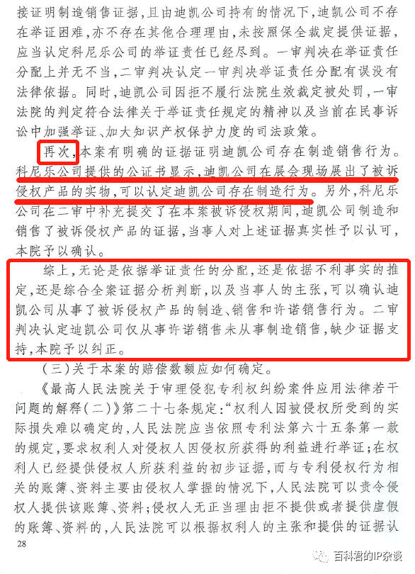 關(guān)鍵在于,最高院是“從舉證責(zé)任和舉證妨礙的角度可以推定凱迪公司存在制造銷(xiāo)售行為”。