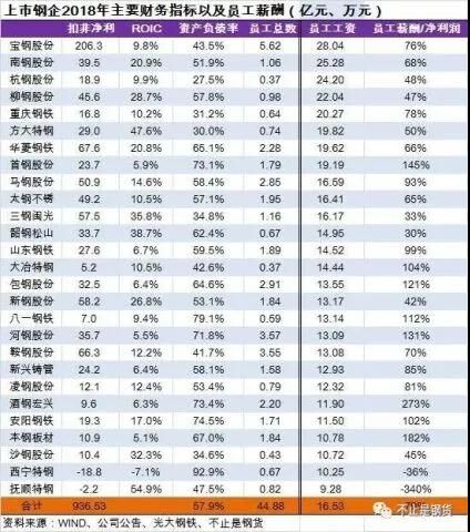 2018年上市鋼鐵公司員工薪酬排行榜