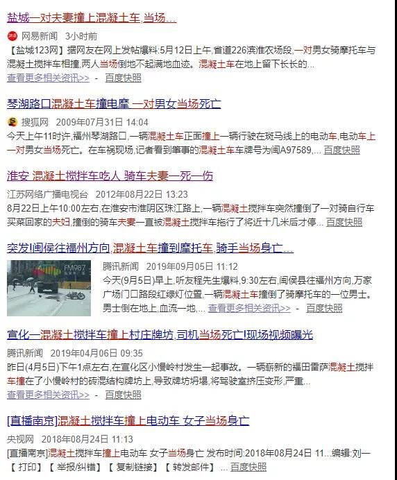 每年混凝土攪拌車發(fā)生碰撞的事并非少數(shù),小編在百度上一搜索,心中一痛。發(fā)生這種事,對(duì)混凝土攪拌站、司機(jī)、受害人都是有影響的。輕則罰款、名義受損,重則當(dāng)場(chǎng)丟失性命。