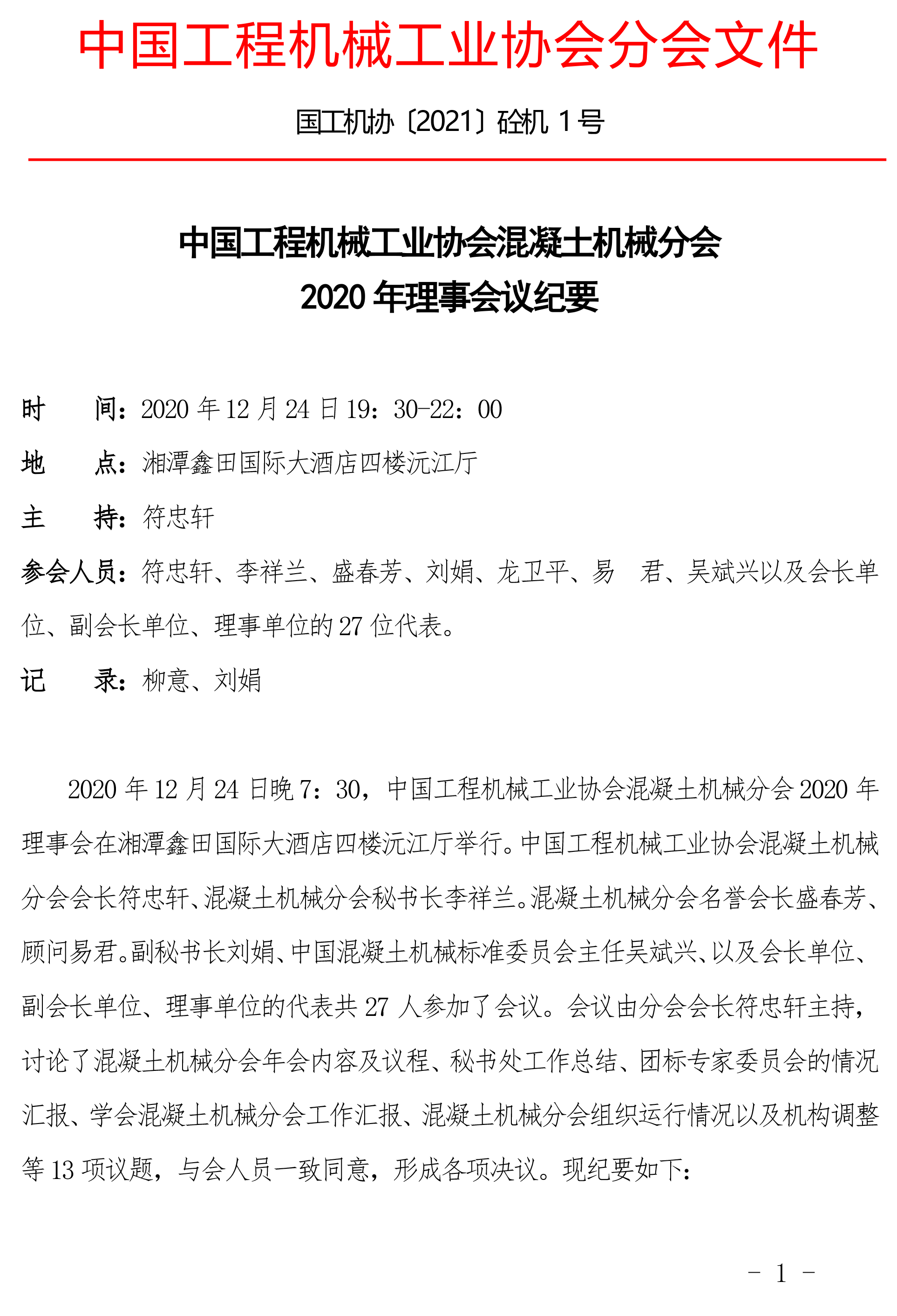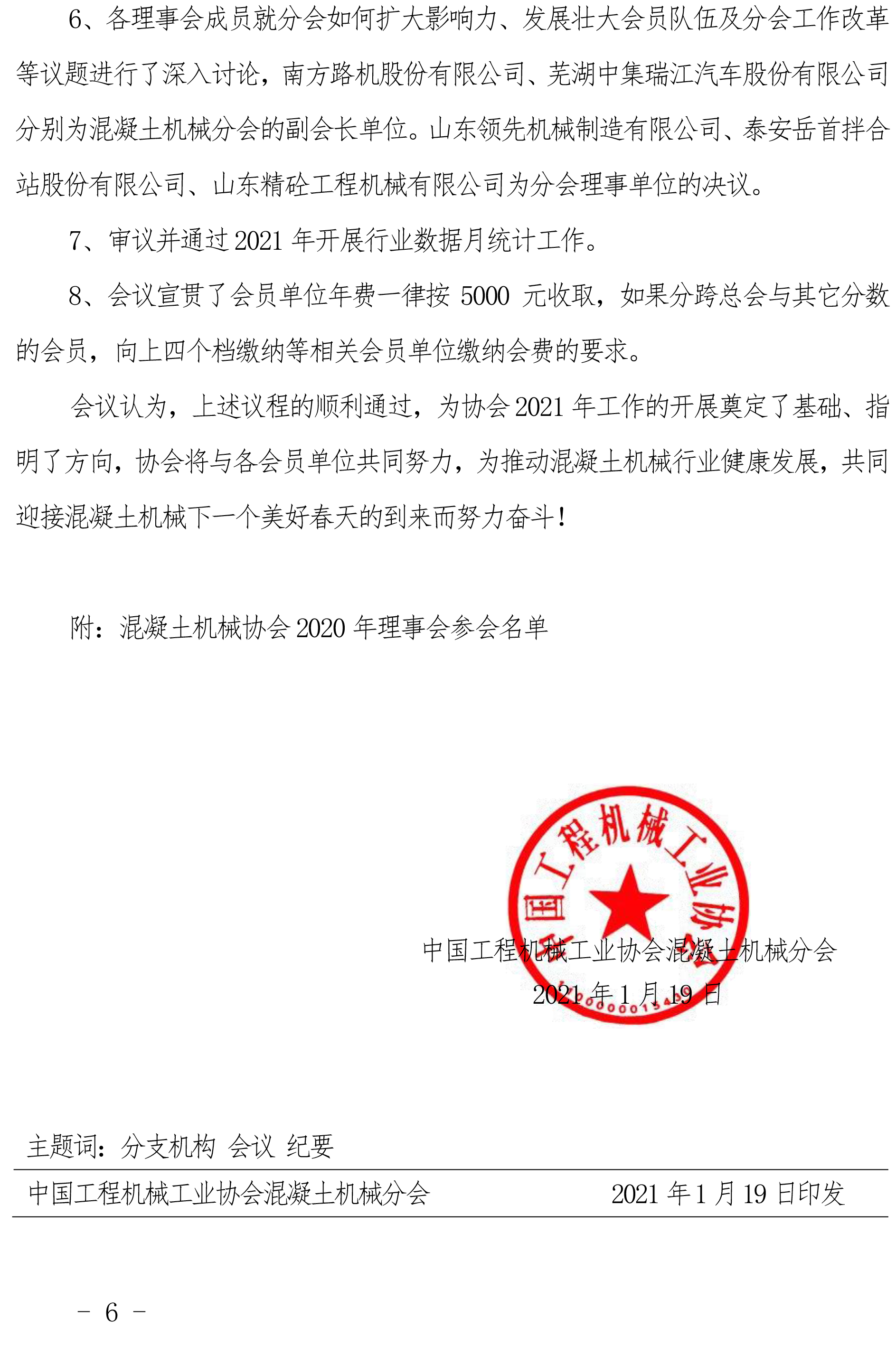 中國工程機械工業(yè)協(xié)會混凝土機械分會 2020 年理事會議紀要