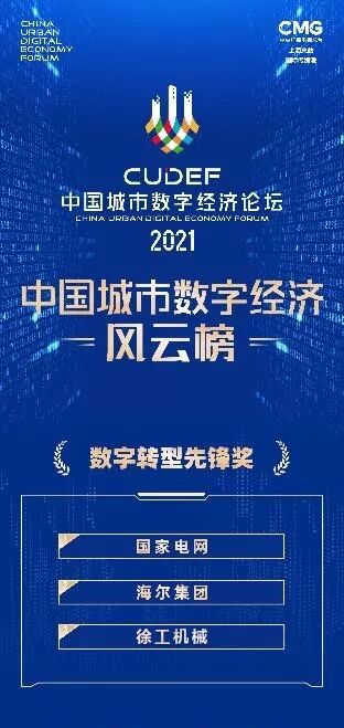 論壇上,《中國城市數(shù)字經(jīng)濟風云榜》榮耀發(fā)布。榜單包括“城市數(shù)字經(jīng)濟競爭力綜合排名”,同時多項重磅獎項發(fā)布,“數(shù)字賦能先鋒獎”“數(shù)字轉(zhuǎn)型先鋒獎”“數(shù)字應(yīng)用方案獎”。徐工機械與國家電網(wǎng)、海爾集團同時榮獲“數(shù)字轉(zhuǎn)型先鋒獎”,成為唯一入選的工程機械制造企業(yè)。