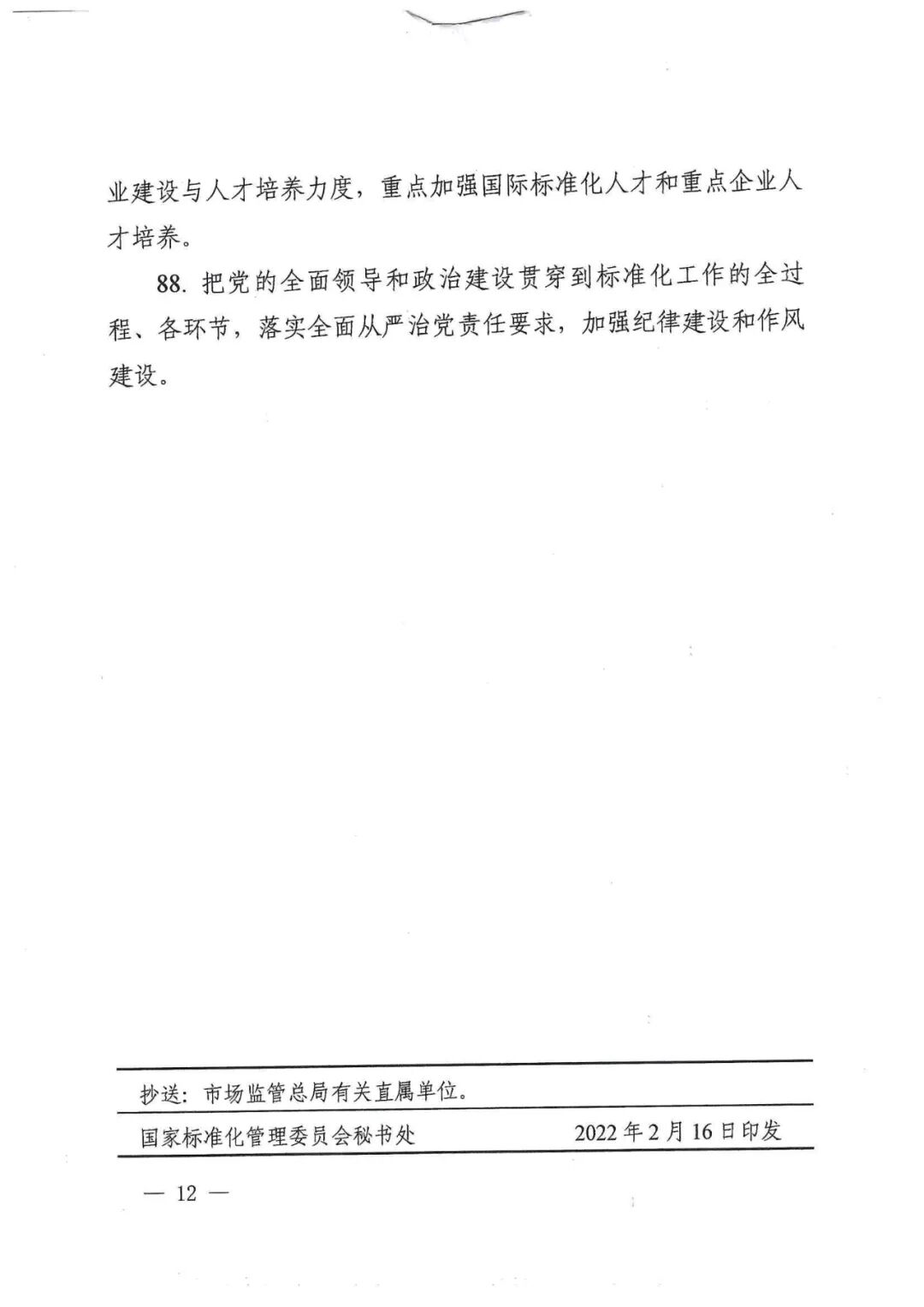 國家標準化管理委員會關于印發(fā)《2022年全國標準化工作要點》的通知