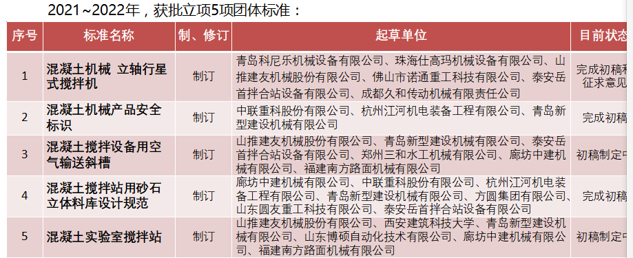 以市場需求為導(dǎo)向,圍繞產(chǎn)品鏈,今年重點(diǎn)從“關(guān)鍵部件/系統(tǒng),新材料、新能源,智能產(chǎn)品、智能互聯(lián)”方1立項(xiàng)團(tuán)體標(biāo)準(zhǔn),引導(dǎo)和服務(wù)混凝十機(jī)械行、發(fā)展。 2022年擬申請團(tuán)體標(biāo)準(zhǔn)立項(xiàng)10項(xiàng)以上。