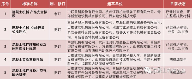 今年在廣州召開了團(tuán)體標(biāo)準(zhǔn)第五次全體會(huì)議并評(píng)審了三項(xiàng)標(biāo)準(zhǔn):《混凝土機(jī)械 立軸行星式攪拌機(jī)》、《混凝土機(jī)械安全標(biāo)識(shí)》、《混凝土攪拌站用砂石立體料庫(kù)設(shè)計(jì)規(guī)范》。