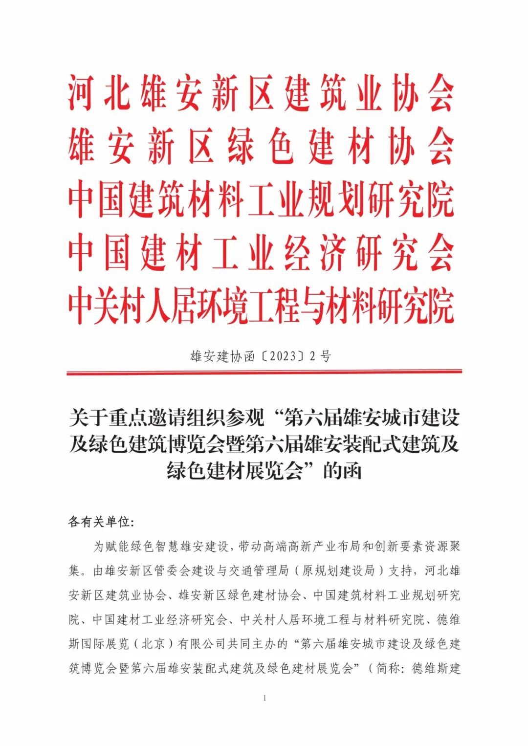 請(qǐng)簽收|關(guān)于重點(diǎn)邀請(qǐng)組織參觀“第六屆雄安建博會(huì)”的函