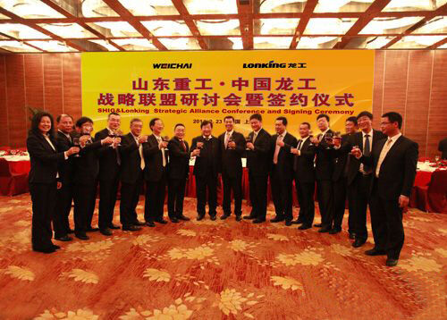 山東重工集團有限公司總經(jīng)理江奎先生和中國龍工控股有限公司首席執(zhí)行官兼總裁邱德波先生,代表各自企業(yè)共同訂立了《戰(zhàn)略合作協(xié)議》,攜手打造轉(zhuǎn)型升級、創(chuàng)新發(fā)展戰(zhàn)略聯(lián)盟的新航母。