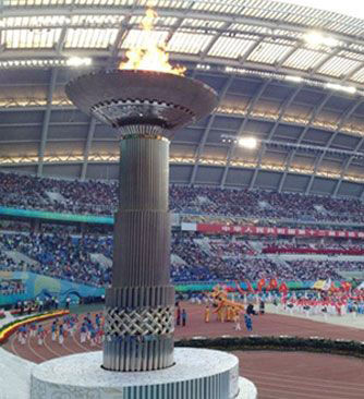 主火炬由沈陽北方交通重工集團負責創(chuàng)意、設計、制作、安裝及點火的工作。據(jù)悉,本次主火炬的制作工作時間緊急,任務繁重。在僅50天的時間里,北方交通主火炬制作團隊克服了重要技術及工藝難關,僅用26天時間就成功升起。同時,本次主火炬的制作,創(chuàng)下了歷屆當中時間最短的紀錄,更是首次在室內(nèi)場館中進行搭建吊裝,并且克服了多節(jié)升降結構的舉升難題。作為項目總負責人,沈陽北方交通重工集團董事長、總裁曲凱先生又立下了汗馬功勞,臨危受命之后為此特別成立了工作指揮部,全程親自指揮調(diào)度主火炬的創(chuàng)意、制作、安裝和調(diào)試工作,不分白天黑夜奔波于工廠和奧體中心之間,并及時向有關領導匯報工作。為保證完成時間,他制訂了嚴格的計劃表,要求各部門積極配合,同時調(diào)動所有可以調(diào)動的資源,克服一切困難全力奮戰(zhàn),保證晝夜連續(xù)施工,主火炬牽涉部件近萬個,涉及電器、傳感、液壓、機械控制等多個領域,在北方交通近500人制作團隊的齊心協(xié)力下,艱苦奮戰(zhàn)了40多個晝夜,主火炬終于如期完成,以最完美的姿態(tài)呈現(xiàn)在世人面前。