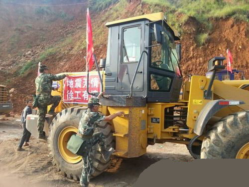 趕到災區(qū)的徐工救援隊指揮徐楠聯(lián)系上當?shù)卣筒筷?,在辦理好登記等相關手續(xù)后,積極請戰(zhàn)要求分派任務,主動要求到最困難和最需設備的地方。中國武警部隊第三總隊領導經(jīng)過現(xiàn)場開會部署,決定臨時征用徐工一臺裝載機加入武警救援部隊。