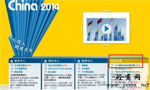 1.電腦用戶(hù)可以直接在bauma China 2014的官方網(wǎng)站上查看(按步驟點(diǎn)擊紅色方框部分即可)