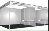 長3米x寬3米x圍板高2.5米,含1張咨詢臺、2把椅子、1個220V電源插座、公司楣板;