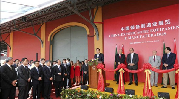 當?shù)貢r間20日,李克強在里約熱內(nèi)盧州州長佩藏和巴西外長維埃拉的陪同下來到里約民港碼頭,參觀正在這里舉辦的中國裝備制造業(yè)展覽,并為展覽開幕剪彩。展覽包括鐵路及軌道交通、電力、通信、金融等10個板塊,代表國內(nèi)裝備制造業(yè)最高水平的30家中國企業(yè)參展。