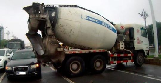 由于連日來的大雨,23日下午13時50分許,福建晉江市晉光路燈控路口,一輛攪拌車剎車打滑,車頭沖上綠化帶撞了電子警察監(jiān)控桿,之后車身打橫,車尾擦撞了一旁停車等紅燈的奧迪小車,兩人當街發(fā)生爭執(zhí)。