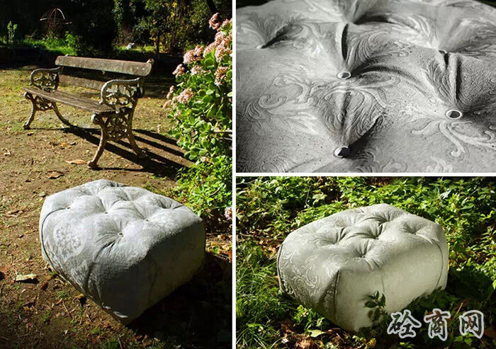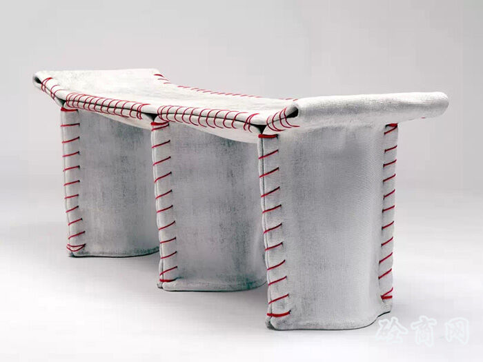 德國(guó)設(shè)計(jì)師florian schmid設(shè)計(jì)了一種“縫合混凝土”座椅,這個(gè)設(shè)計(jì)受到了混凝土帆布(CC)材料的影響?;炷敛剂鲜且环N浸漬了布料的柔軟水泥,它在水合過(guò)程中變硬,最終形成一個(gè)輕薄的,防水防火的混凝土表皮,將柔軟溫暖的布料質(zhì)感和堅(jiān)硬冰冷的水泥融為一體。