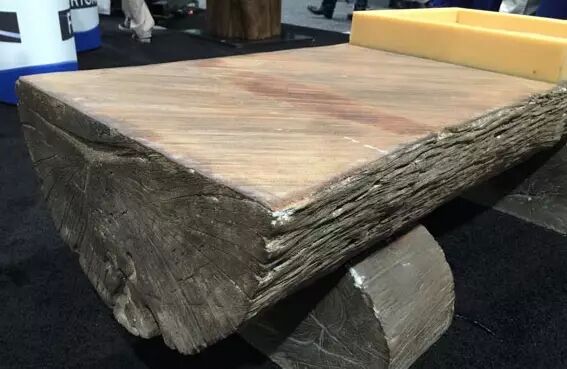這個(gè)凳子看上去是古木,實(shí)際上卻是混凝土制作完成。