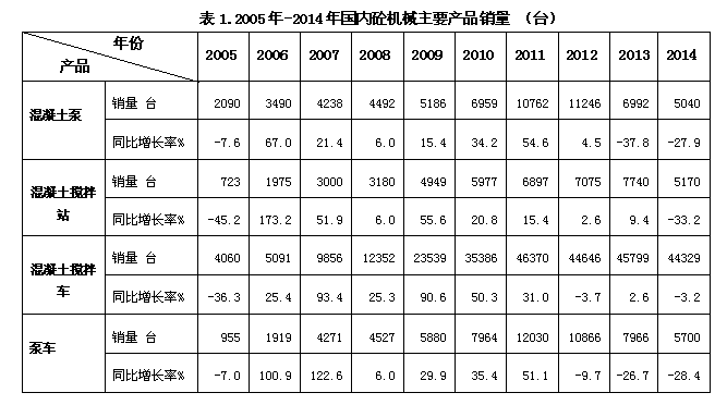 1)2014年中國砼機械主要設備保有量