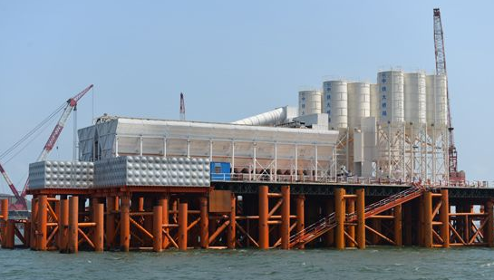 針對施工環(huán)境及施工要求,方圓集團設(shè)計生產(chǎn)出國內(nèi)抗風(fēng)等級最高的混凝土攪拌站,抗風(fēng)能力12級以上。同時,設(shè)計生產(chǎn)出世界上單斗儲量最大的配料機,一次性可生產(chǎn)1000立方混凝土,以滿足建設(shè)施工要求。經(jīng)過7個月的緊張安裝調(diào)試,方圓集團技術(shù)人員、售后服務(wù)工程師克服重重困難,積極應(yīng)對艱苦挑戰(zhàn),與巨浪搏斗,與臺風(fēng)賽跑,與惡劣的自然環(huán)境抗?fàn)帲瑘A滿完成2HZS180D型水上平臺混凝土攪拌站的安裝、調(diào)試任務(wù),產(chǎn)品順利通過各項性能檢測檢驗,順利投入使用,卓越的產(chǎn)品性能得到施工方的充分認可和高度評價,將為福平鐵路的建設(shè)提供優(yōu)質(zhì)、高效、盡善盡美的服務(wù)。