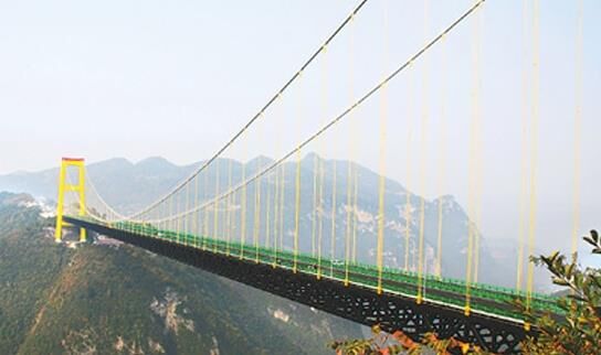 中聯(lián)重科塔機(jī)產(chǎn)品參建世界第一高橋龍?zhí)逗犹卮髽?,堪稱“天路中的天橋”。大橋主跨900米,索塔頂距谷底650米,橋面距谷底560米,相當(dāng)于200層樓高,比目前世界最高橋法國(guó)米約大橋分別高307米和290米。大橋的另一端距離公路隧道23米,借助火箭彈發(fā)射先導(dǎo)索過(guò)峽谷,開(kāi)創(chuàng)了國(guó)內(nèi)乃至世界建橋史上的先河。龍?zhí)逗犹卮髽虻淖畲髽蚨崭哌_(dá)178米,創(chuàng)下連續(xù)鋼構(gòu)箱梁橋墩高度的世界之最,被譽(yù)為“世界第一高懸索橋”。