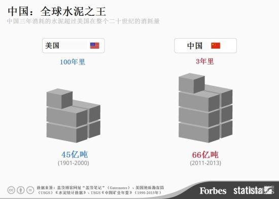 比爾·蓋茨做了一個(gè)令人震撼的對(duì)比,讓大家對(duì)中國(guó)在二十一世紀(jì)對(duì)水泥的狼吞虎咽有一個(gè)直觀認(rèn)識(shí)。比爾·蓋茨在個(gè)人博客上表示,2011年至2013年期間,中國(guó)消耗了66億噸水泥,超過(guò)美國(guó)在整個(gè)二十世紀(jì)的消耗量。但是看看美國(guó)在1901年至2000年期間建造了哪些工程:各種摩天大樓、州際公路、胡佛水壩等等,而期間消耗的水泥總共只有45億噸。不過(guò),蓋茨沒(méi)有能夠呈現(xiàn)中美兩國(guó)地理環(huán)境、建筑習(xí)慣的差異,因而有些大驚小怪。