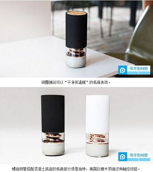 今天我們要介紹的是一款造型設(shè)計和材質(zhì)都非常獨特的藍牙音箱,它就是結(jié)合了混凝土基座和螺旋銅管低音部件的Pavilion。該揚聲器目前正在Kickstarter上進行眾籌,其設(shè)計者則是Hult Design。Pavilion支持藍 Pavilion的直徑為3.95英寸(10 cm)、高10.22英寸(26cm)、重3.3磅(1.5 kg),感興趣的伙伴可以拿出$229美元去買一個白色或黑色版本(比零售價要便宜$110美元)。