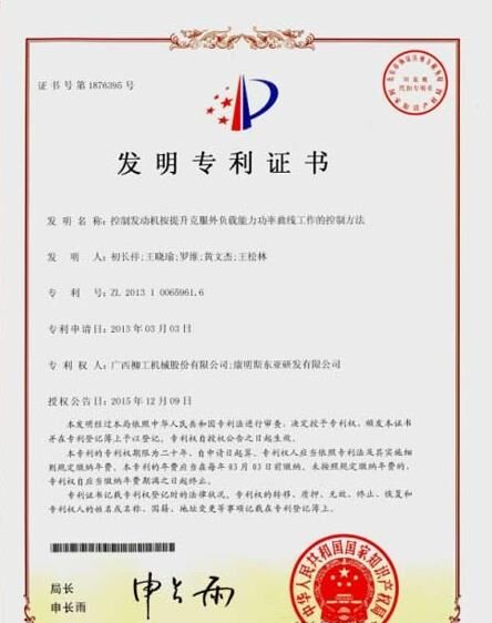 近日,柳工“控制發(fā)動機按提升克服外負載能力功率曲線工作的控制方法”的發(fā)明專利獲得國家專利局授權。這是柳工進入發(fā)動機領域的第一項技術發(fā)明專利,同時也是與世界級企業(yè)康明斯合作的標志性技術成果。