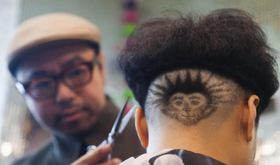 圖為理發(fā)師為女子剪出齊天大圣頭型。