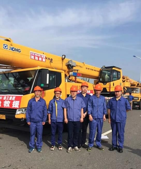 23日下午,由6名人員、4臺(tái)起重機(jī)、1臺(tái)挖掘機(jī)和兩輛服務(wù)車組成的救援小分隊(duì)趕到鹽城阜寧縣災(zāi)區(qū),緊急與當(dāng)?shù)鼐仍渚?、政府取得?lián)系,聽從統(tǒng)一指揮,全力投入現(xiàn)場(chǎng)搶險(xiǎn)。