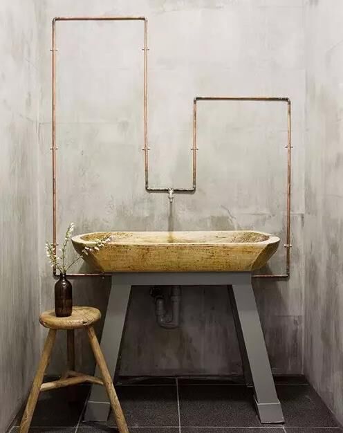 一眼就愛上這個(gè)洗漱空間,水泥與木質(zhì)竟然搭配地如此完美。