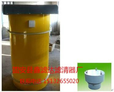 水泥倉頂除塵器結(jié)構(gòu)簡介,是一種圓形可拆的金屬濾筒,底板上有14個(gè)嵌入圓形孔,它設(shè)有14個(gè)濾芯,扎緊在上端1個(gè)振動(dòng)器的吊架上,定時(shí)震動(dòng),使濾芯阻留下來的灰塵降落在倉內(nèi)。
