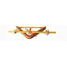 在正機安裝時,首先確定好安裝位置,將前吊桿焊在清掃器三角板上,再將橫粱焊在機架上,前吊桿調(diào)正螺絲頂在橫梁上,調(diào)正刮板與膠帶距離,后吊環(huán)角鐵焊在機架槽綱下面,吊著清掃器尾部,自動調(diào)正清掃器