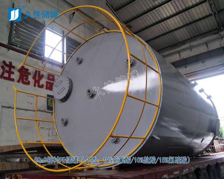 氫氟酸儲(chǔ)罐材質(zhì)  廣東鋼襯PE氫氟酸儲(chǔ)罐廠家 久佳牌 訂制 鋼襯塑酸堿儲(chǔ)存罐特性:鋼襯塑儲(chǔ)罐由于其獨(dú)特的滾塑工藝、產(chǎn)品整體結(jié)構(gòu)和材料優(yōu)異性能,具有整體性好、強(qiáng)度高、無焊縫、不滲漏、抗沖擊、韌性好、重量輕、壽命長、耐酸堿、耐有機(jī)溶媒、符合衛(wèi)生標(biāo)準(zhǔn)、價(jià)格低廉、規(guī)格品種多等特點(diǎn)。尤其耐腐蝕、長壽命和大規(guī)格品種有非常大的優(yōu)勢(shì),是貯存和運(yùn)輸各類化工液體半固體的理想產(chǎn)品。其性能大大超過了傳統(tǒng)的玻璃鋼、陶瓷、橡膠、焊接塑料等材料制作的防腐儲(chǔ)罐。已成為傳統(tǒng)防腐儲(chǔ)罐的升級(jí)換代產(chǎn)品,逐漸成為防腐儲(chǔ)罐的首選產(chǎn)品。