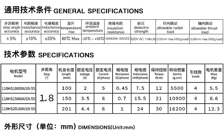 歸屬行業(yè):兩相1.8°混合式步進電機110系列步進電機