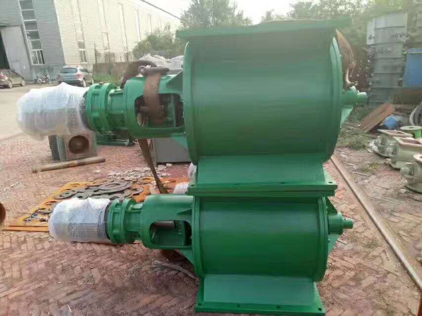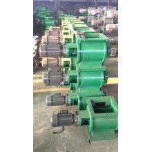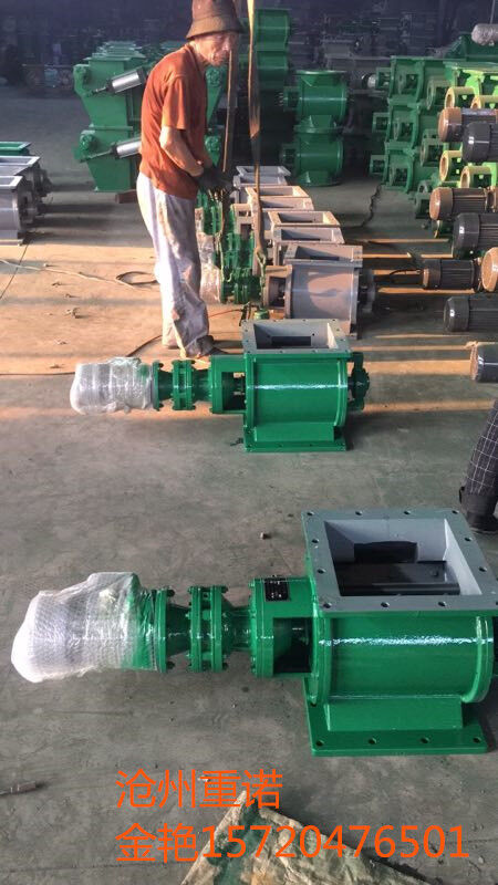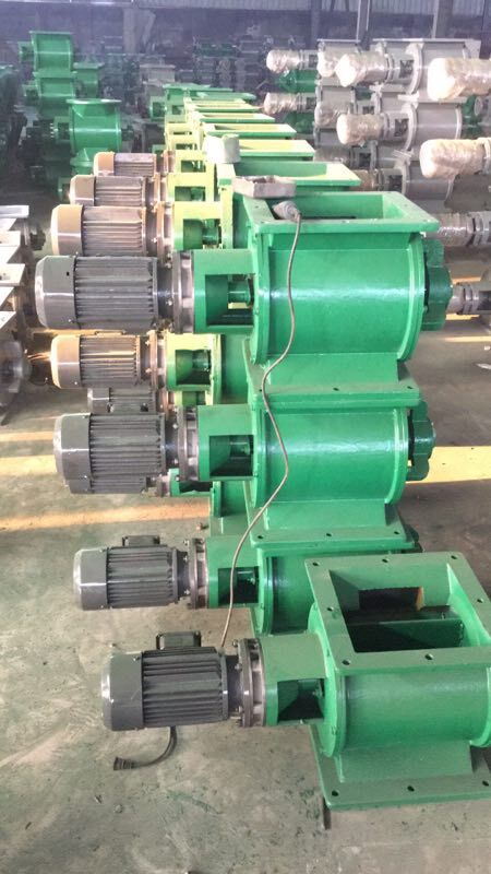 工作原理:星型卸料器工作時,粉塵靠重力落入,充滿上面和側(cè)面的星形葉片空格。葉片轉(zhuǎn)子由電動機通過減速機轉(zhuǎn)動軸帶動,葉輪轉(zhuǎn)到下部粉塵靠自重卸下。這種卸塵器一般都安裝在除塵器灰斗下部,為保證連接處的嚴密不漏風,在回轉(zhuǎn)卸料器的上部應(yīng)經(jīng)常保持(儲存)一定高度的粉塵。因為葉輪轉(zhuǎn)動時,卸完粉塵后葉輪轉(zhuǎn)上的那一面經(jīng)常是沒有粉塵的,所以容易使空氣漏入。為了保持一定高度的灰柱,而且不致卸空,*在灰斗內(nèi)裝設(shè)料位信號設(shè)施,并與卸塵閥的電動機建立連鎖。